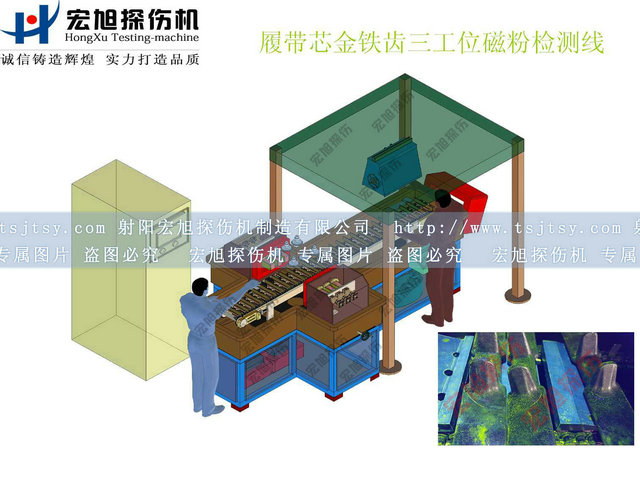 射陽夜色网址最新探傷機製造有限公司攜手履帶鐵齒鍛造件製造企業,專業設計製造專用於履帶鐵齒芯金無損檢測設備,該機輸送線、機電一體,一次可檢測三支工件,可長時間運行、效率高、檢測靈敏度強。滿足履帶鐵齒大批量製造的質檢需要。